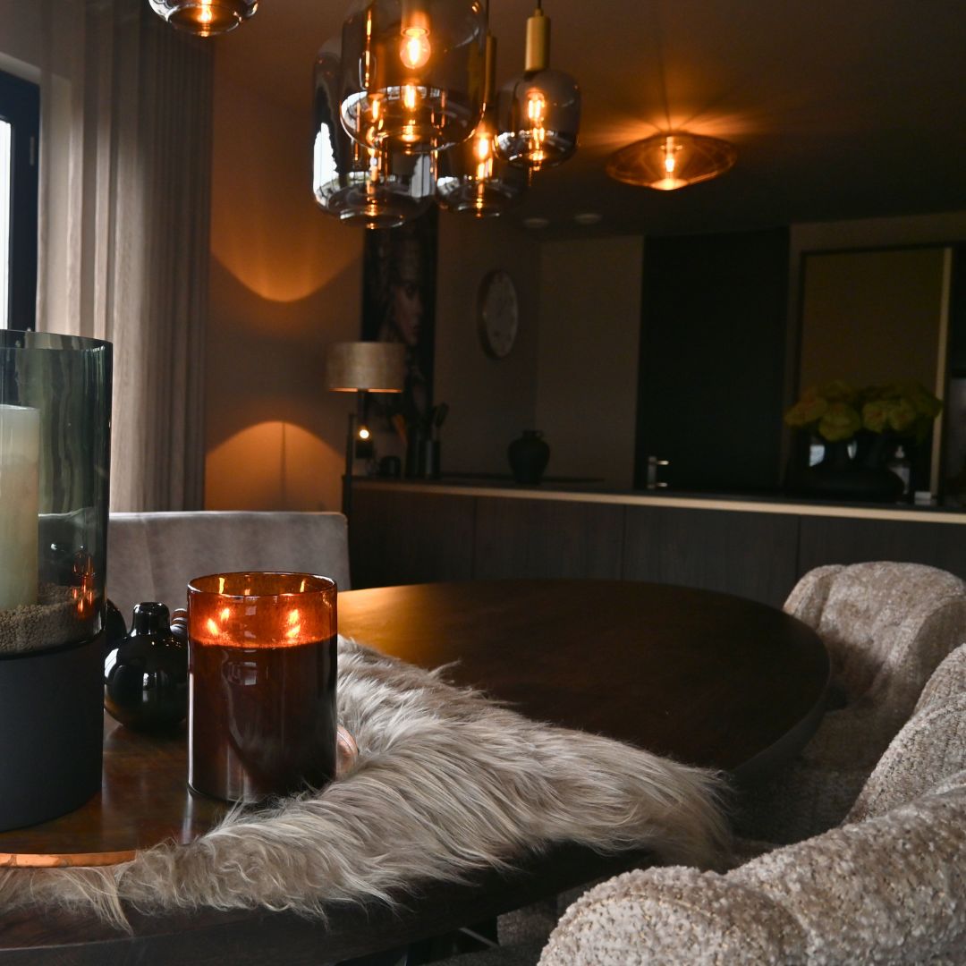 Combineer verschillende materialen zoals hout, wol en glas voor een rijker effect.